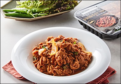 고기를 재운 다음 조리할 땐, 센 불이 핵심이에요. 팬을 충분히 달군 뒤 기름 없이 고기를 바로 볶아줘요. 고기에서 나온 기름이 스스로를 익히는 방식이라 풍미가 살아나거든요.