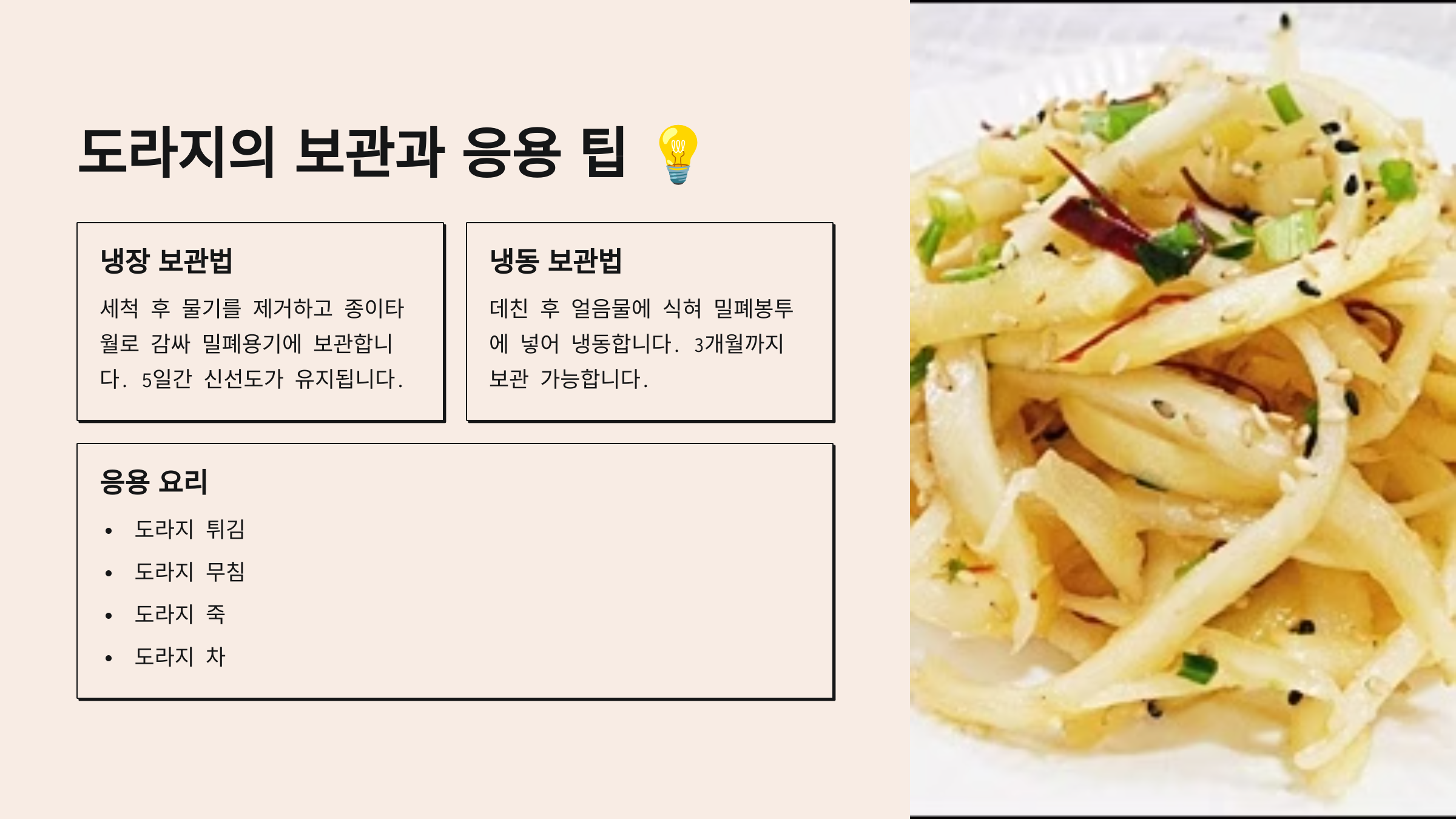 📦 도라지나물 보관 & 응용법 요약표 🍱