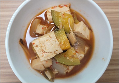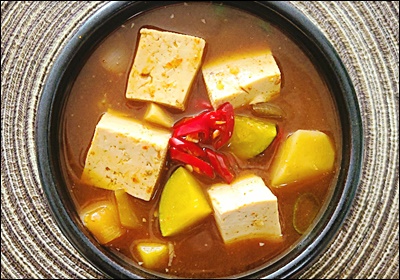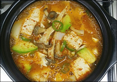- 두부와 청양고추를 추가하고 5분간 더 끓여요.