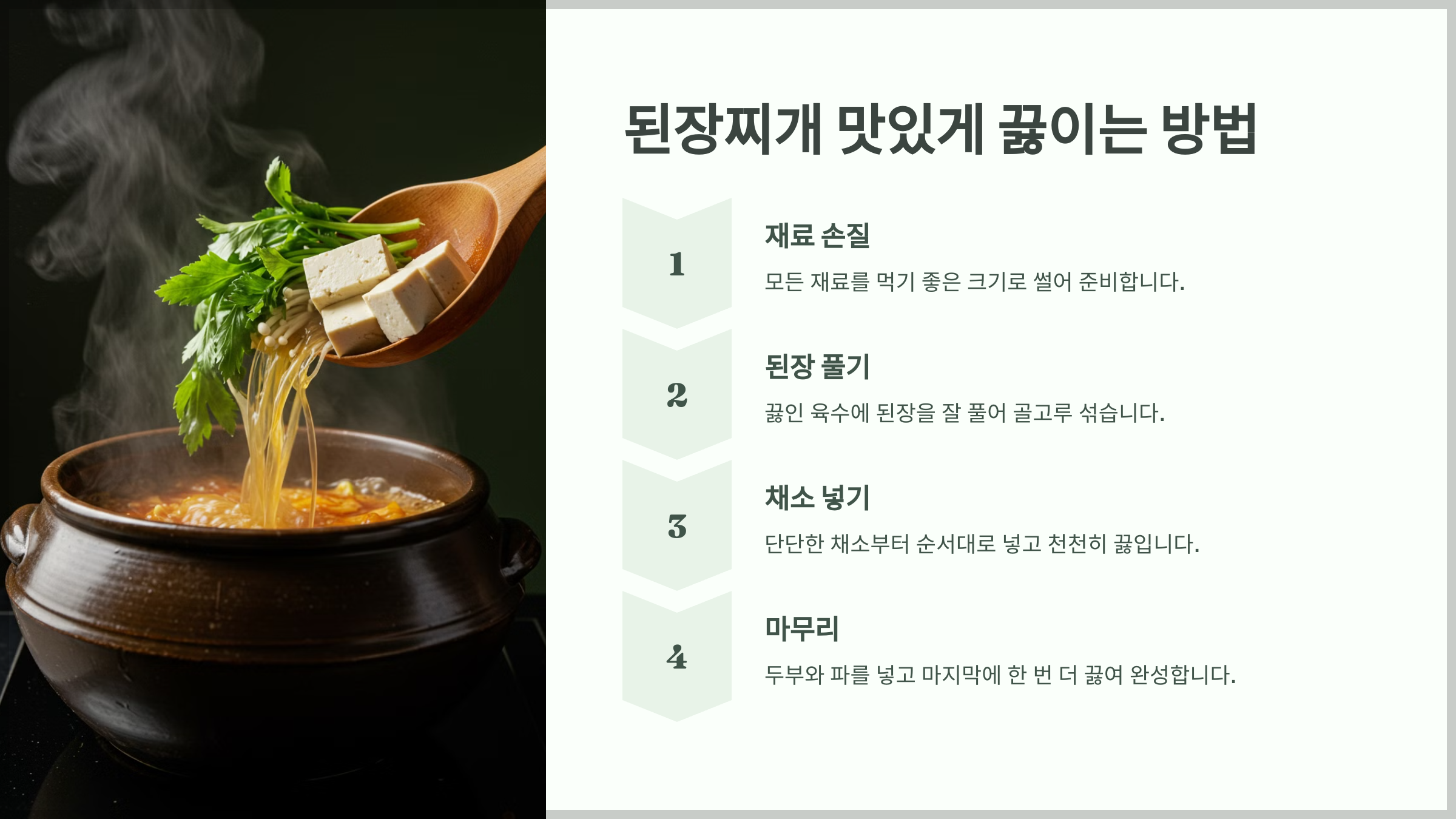 이제 깊고 진한 국물을 내는 비법을 알았으니, 본격적으로 된장찌개를 맛있게 끓이는 방법을 알아볼까요? 😋