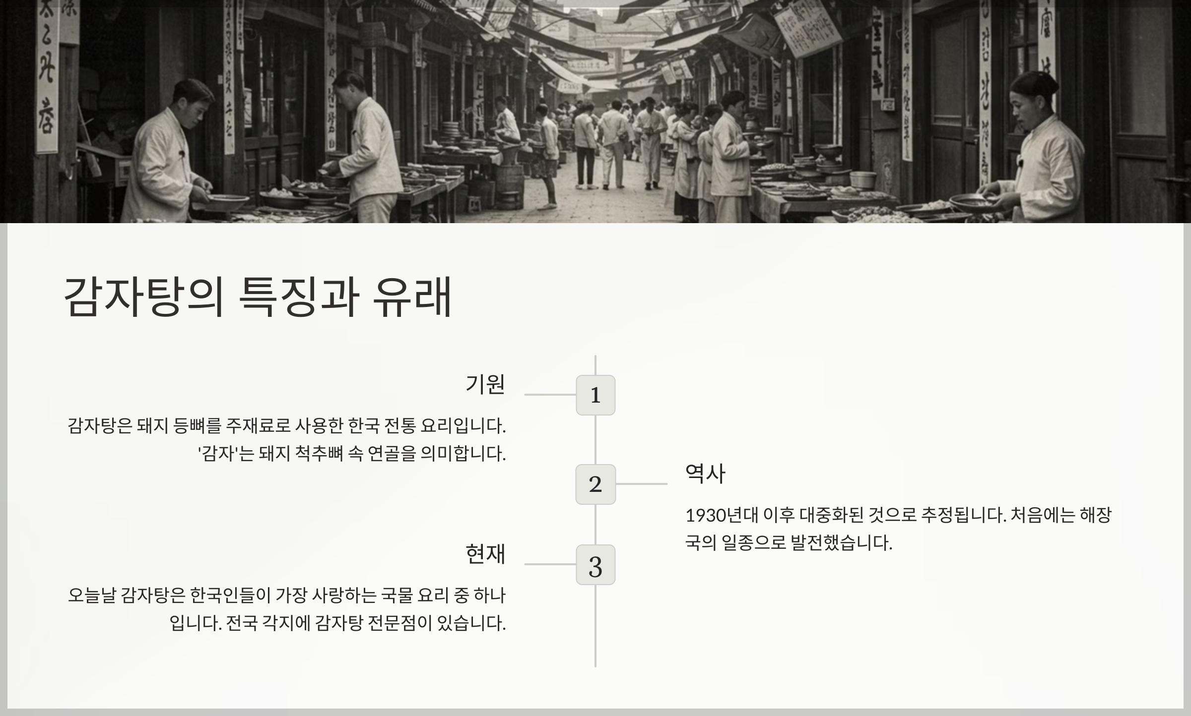 감자탕은 돼지 등뼈를 푹 삶아 만든 국물 요리로, 얼큰하고 깊은 맛이 특징이에요. 감자라는 이름이 들어가 있지만, 실제로는 '감자'보다는 돼지 뼈에서 나온 '감자살(뼈에 붙어 있는 살코기)'에서 유래한 말이라는 설이 있어요.