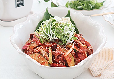- 먹기 직전에 무쳐야 재료에서 물이 덜 나와요.