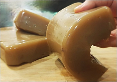 - 묵이 어느 정도 굳으면 냉장고에 넣어 3시간 이상 차갑게 식혀요.