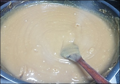 - 계속 저어야 해요! – 바닥이 눌어붙지 않도록 주걱으로 저으면서 끓이세요.