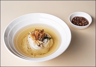 | 🥚 온천 계란 잔치국수 | 국물에 온천 계란을 넣어 고소하고 부드러운 맛 더하기! |
